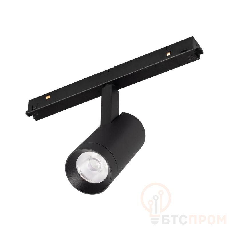 Светильник для магнитных треков MAG-ORIENT шириной 26 мм с управлением DALI (DT8) и изменяемой цветовой температурой. Мощность 12 Вт, св. поток 730-890 лм, 61-74 лм/Вт, изменяемая цветовая температуры 2700-6500 K, CRI>94, угол 24°, напряжение питания 48 В. Черный фигурный корпус из металл, экран поликарбонат, степень защиты IP20. Размеры LxWxH 204x45x146 мм. Длина светоизлучающего модуля 100мм. Монтаж на трек MAG-ORIENT. Пульсация <1%.