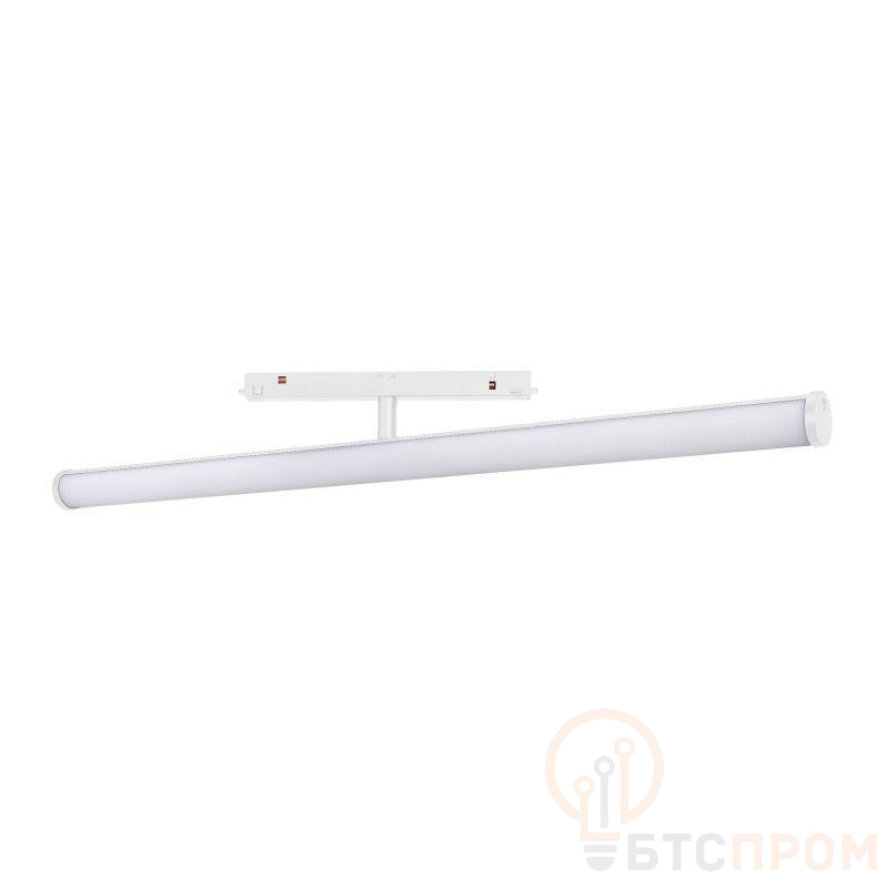 Светильник для магнитных треков MAG-ORIENT шириной 26 мм. Мощность 20 Вт, св. поток 2000 лм, 100 лм/Вт, дневной 4000 K, CRI>90, угол 180°, напряжение питания 48 В. Белый фигурный корпус из алюминия, экран поликарбонат, степень защиты IP20. Размер: диаметр 30 мм, длина 600 мм, высота 81 мм. Монтаж на трек MAG-ORIENT. Пульсация <1%.