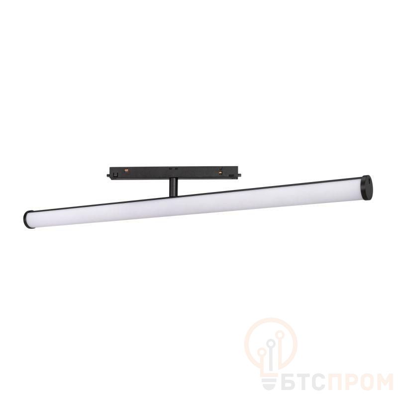Светильник для магнитных треков MAG-ORIENT шириной 26 мм. Мощность 20 Вт, св. поток 2000 лм, 100 лм/Вт, теплый 3000 K, CRI>90, угол 180°, напряжение питания 48 В. Черный фигурный корпус из алюминия, экран поликарбонат, степень защиты IP20. Размер: диаметр 30 мм, длина 600 мм, высота 81 мм. Монтаж на трек MAG-ORIENT. Пульсация <1%.