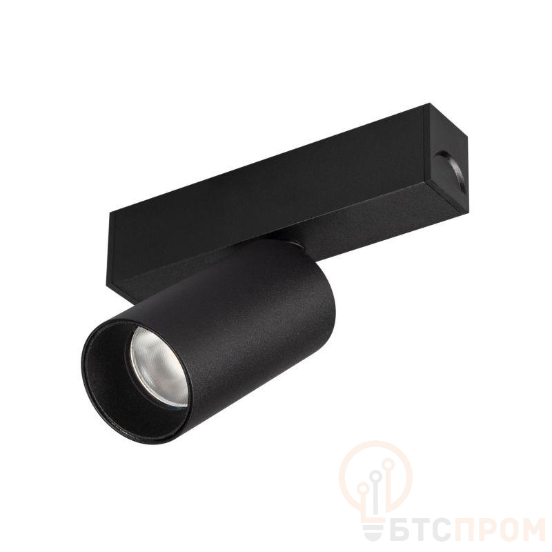 Светильник поворотный для магнитных треков шириной 25 мм, 5 Вт. Цвет свечения ДНЕВНОЙ 4000K, световой поток 350лм, угол 30°, CRI>90. Корпус прямоугольный, металл, цвет черный, IP20. Размеры LxWxH 100x20x95 мм. Входное напряжение DC24V, мощность 5 Вт. Драйвер DС24V/AC230V поставляется отдельно.Диаметр светоизлучающего модуля 35 мм. Диммируется только с 026407, 027633.