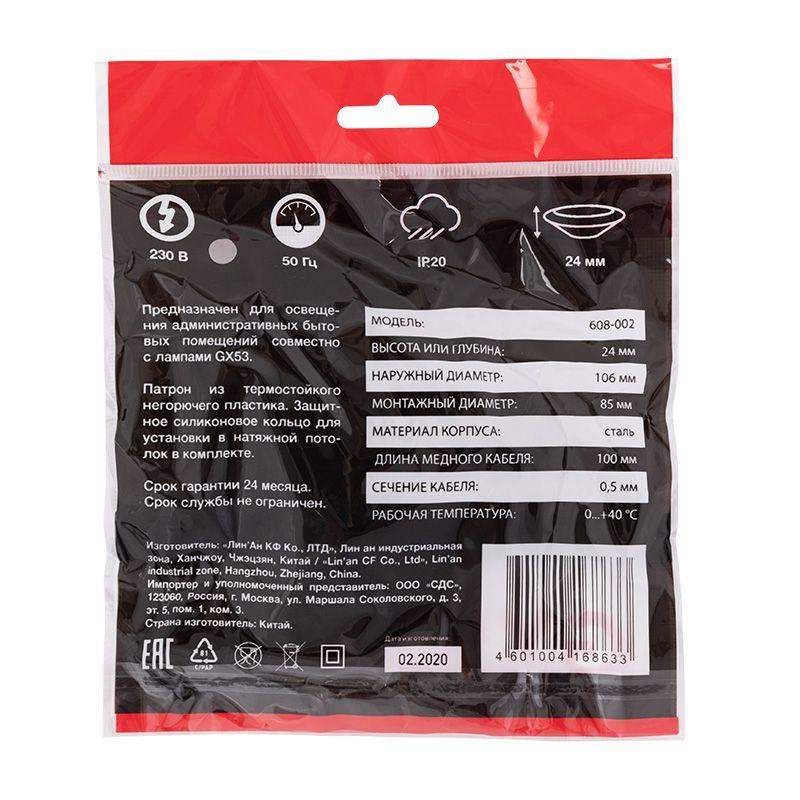 Встраиваемый светильник GX53 предназначен для подключения лампы с цоколем GX53. Подходит для монтажа к потолку любого типа. Толстостенный корпус из стали покрыт антикоррозийным составом, устойчив к механическим воздействиям. Отличается очень малой глубиной монтажа. Патрон выполнен из термостойкого негорючего пластика, поэтому не деформируется под воздействием высоких температур и отвечает всем требованиям пожарной безопасности. Благодаря компактному размеру и небольшому весу светильник легко устанавливается без специальных инструментов. Также в комплект входит силиконовое кольцо для монтажа на натяжных потолках.