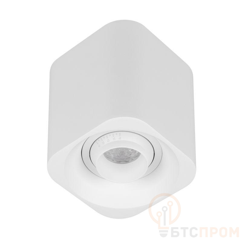 Накладной интерьерный светильник c регулируемым углом излучения. Мощность 10 Вт, св. поток 870-880 лм, 87 лм/Вт, дневной 4000K, CRI>90, угол 20°-45°, напряжение питания 230 В. Белый квадратный корпус, угол поворота светового модуля 60° (30°+30°), степень защиты IP20. Размер: длина 95 мм, ширина 95 мм, высота 98 мм. Монтаж накладной. Драйвер встроенный 27-48 В, 250 мА, пульсация < 0,3 %.