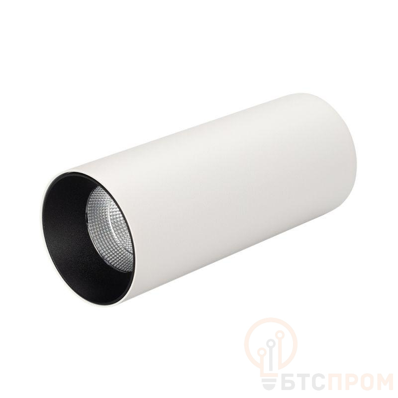 Накладной светильник 8Вт, белый круглый корпус, черная вставка, металл. Цвет свечения БЕЛЫЙ ТЕПЛЫЙ 3000K, св.поток 570лм, CRI(Ra)>80, угол 40°. Размер O65x155мм, встроенный драйвер PRI:220-240VAC, SEC:DC 200mA 30-43V, 8Вт.
