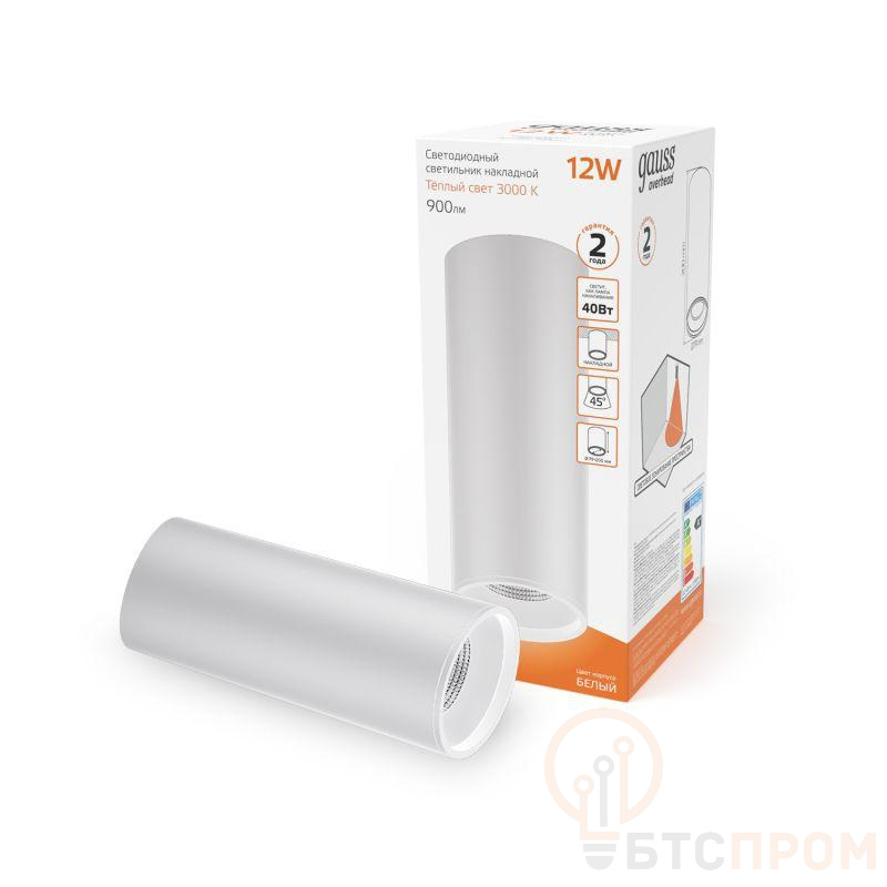 Светильник светодиодный 12Вт 3000К 79х200мм накладной бел./бел. GAUSS HD031 фото в каталоге от BTSprom.by