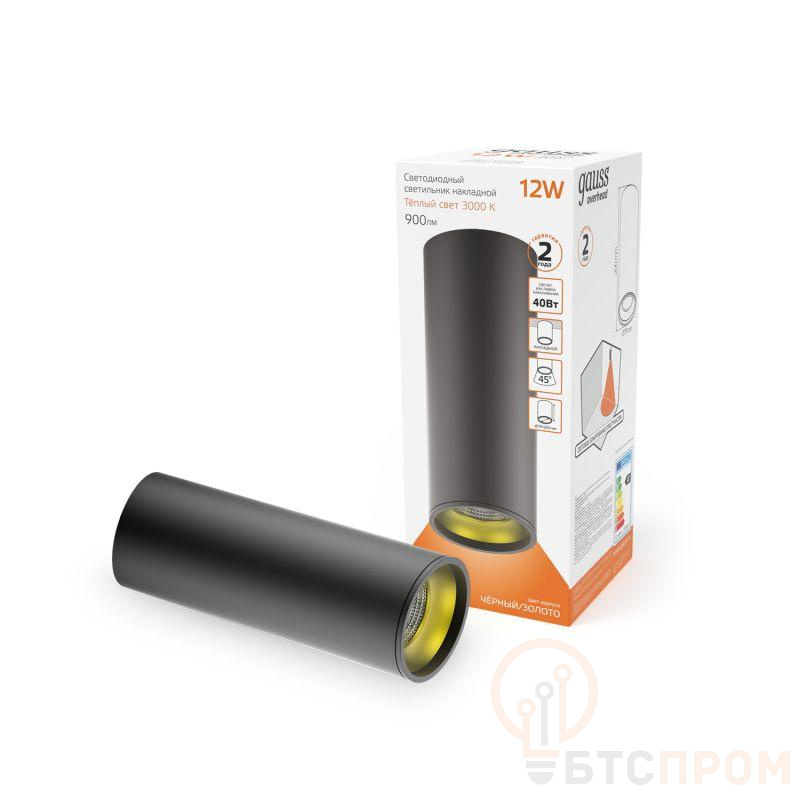 Светильник светодиодный 12Вт 3000К 900лм 79х200мм накладной черн. золото GAUSS HD009 фото в каталоге от BTSprom.by