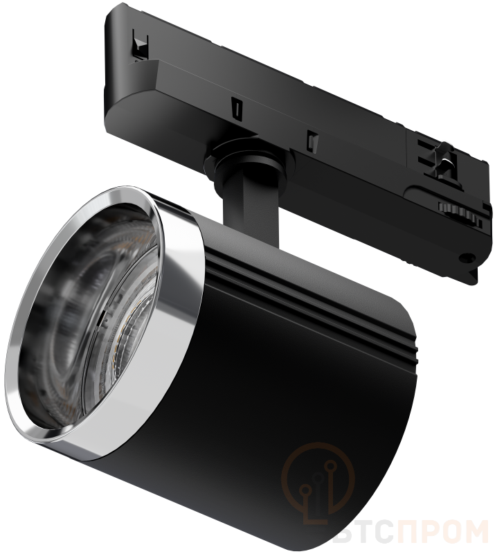 Конструкция. Корпус светильника выполнен из алюминия. Конструкция позволяет вращать светильник на 340° вокруг своей оси и регулировать угол наклона. Использование кольца разной высоты позволяет создать разный угол светового потока: 25° (хромированное высокое кольцо) и 35° (низкое кольцо). Оптическая часть. Прозрачный линзованный рассеиватель изготовлен из светотехнического ПММА, который обладает высоким коэффициентом светопропускания, что позволяет достигнуть высокого светового потока светильника. Установка. Встраивается в трехфазный шинопровод. Источник света. Используются светодиоды повышенной эффективности HONGLI 2835 с индексом цветопередачи >90. Области использования. Торговые залы, общественные и административные помещения.