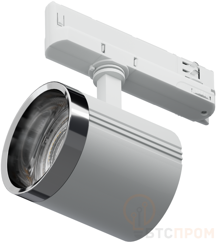 Конструкция. Корпус светильника выполнен из алюминия. Конструкция позволяет вращать светильник на 340° вокруг своей оси и регулировать угол наклона. Использование кольца разной высоты позволяет создать разный угол светового потока: 25° (хромированное высокое кольцо) и 35° (низкое кольцо). Оптическая часть. Прозрачный линзованный рассеиватель изготовлен из светотехнического ПММА, который обладает высоким коэффициентом светопропускания, что позволяет достигнуть высокого светового потока светильника. Установка. Встраивается в трехфазный шинопровод. Источник света. Используются светодиоды повышенной эффективности HONGLI 2835 с индексом цветопередачи >90. Области использования. Торговые залы, общественные и административные помещения.