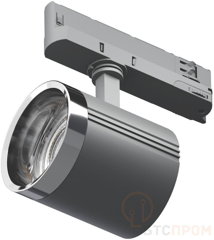 Конструкция. Корпус светильника выполнен из алюминия. Конструкция позволяет вращать светильник на 340° вокруг своей оси и регулировать угол наклона. Использование кольца разной высоты позволяет создать разный угол светового потока: 25° (хромированное высокое кольцо) и 35° (низкое кольцо). Оптическая часть. Прозрачный линзованный рассеиватель изготовлен из светотехнического ПММА, который обладает высоким коэффициентом светопропускания, что позволяет достигнуть высокого светового потока светильника. Установка. Встраивается в трехфазный шинопровод. Источник света. Используются светодиоды повышенной эффективности HONGLI 2835 с индексом цветопередачи >90. Области использования. Торговые залы, общественные и административные помещения.