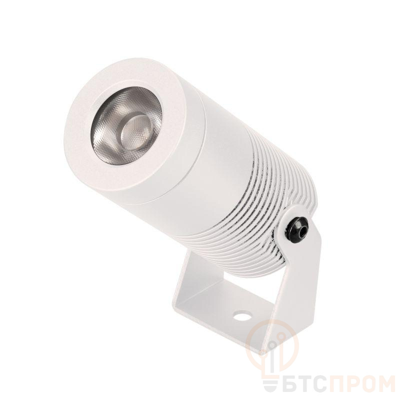 Уличный светодиодный прожектор, мощность 8Вт, угол освещения 33°. Цвет ТЕПЛЫЙ 3000К, световой поток 580лм. Влагозащищенный корпус IP67 - белый алюминий, экран из закалённого стекла. Угол поворота корпуса в вертикальной плоскости 135°. Питание 230В, мощность 8 Вт. Размеры DxH -O44х90мм. В комплекте 1м провод.
