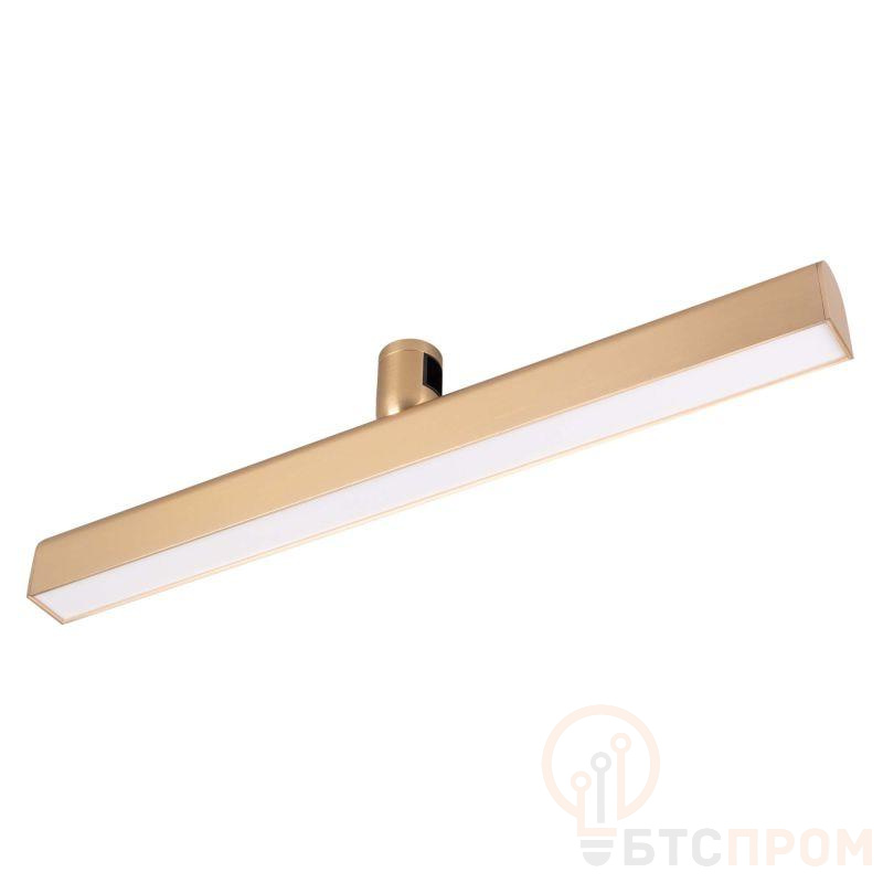 Светильник для треков APRIORI шириной 17 мм. Мощность 15 Вт, св. поток 600 лм, 40 лм/Вт, теплый 3000 K, CRI>90, угол 120°, напряжение питания 48 В. Линейный корпус из алюминия, гальванизированного в цвет светлое золото, экран поликарбонат, степень защиты IP20. Размер: длина 500 мм, ширина 38 мм, высота 95 мм (вместе с корпусом крепления). Диаметр крепления 38 мм. Монтаж на трек APRIORI 17 мм. Пульсация <1%. Возможно диммирование по ШИМ (PWM) или не адресное управление при использовании диммируемого драйвера Dali, 0-10V, TRIAC.