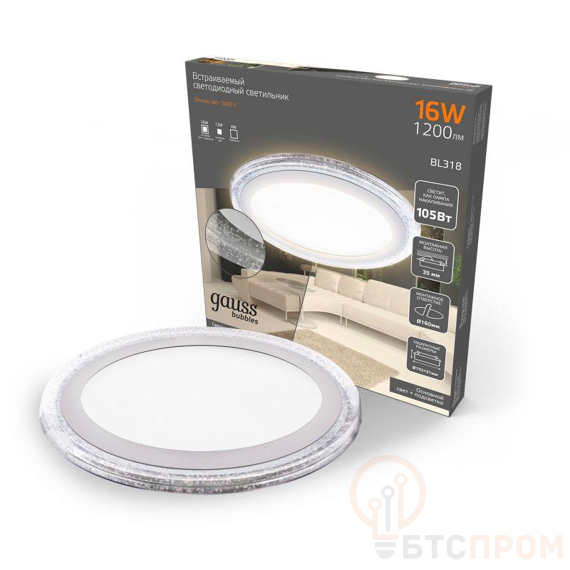 Светильник светодиодный Bubbles 12+4Вт 3000К IP20 1200лм 220-240В ДВО круг бел. GAUSS BL318 фото в каталоге от BTSprom.by