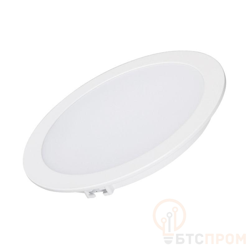 Светодиодная панель 18Вт, корпус белый IP40, круглый. Цвет ТЕПЛЫЙ БЕЛЫЙ 3000K, св.поток 1440-1620лм, CRI(Ra)>80, угол 100°. Размер Ф180x24 мм, установка в отверстие 165 мм. Питание AC 180-240V, 18Вт, DC500mA 32...40V, драйвер в комплекте, пульсация <2%.