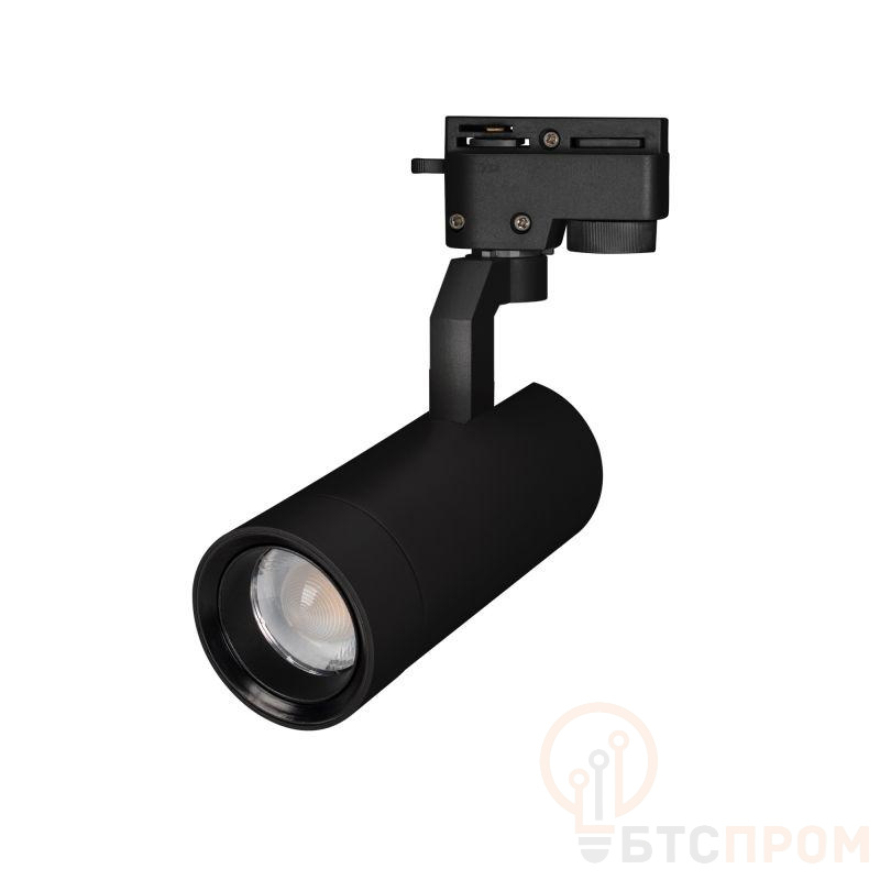 Светильник для треков/шин 2 провода, 20Вт. Цвет свечения БЕЛЫЙ ТЕПЛЫЙ 3000K, световой поток 1800лм, регулируемый угол 20-60°, CRI>90. Корпус круглый, металл, цвет черный, IP20. Размеры Размеры DxL O67x156мм. Входное напряжение AC220-240V, мощность 20Вт. Драйвер встроенный (27-42V, 500mA).