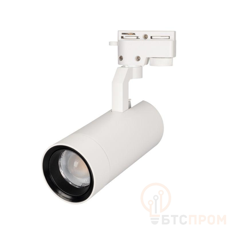 Светильник для треков/шин 2 провода, 30Вт. Цвет свечения ДНЕВНОЙ 4000K, световой поток 2700лм, регулируемый угол 20-60°, CRI>90. Корпус круглый, металл, цвет белый, IP20. Размеры DxL O80x181мм. Входное напряжение AC220-240V, мощность 30Вт. Драйвер встроенный (30-43V, 720mA).