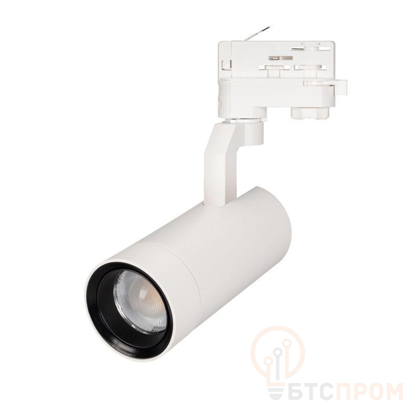 Светильник для треков/шин 4 провода, 20Вт. Цвет свечения ДНЕВНОЙ 4000K, световой поток 1800лм, регулируемый угол 20-60°, CRI>90. Корпус круглый, металл, цвет белый, IP20. Размеры DxL O67x156мм. Входное напряжение AC220-240V, мощность 20Вт. Драйвер встроенный (27-42V, 500mA).