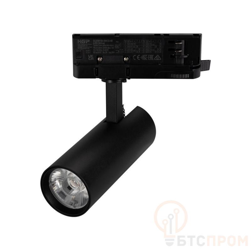 Светильник для треков/шин 4 провода. Мощность 10 Вт, св. поток без решетки honeycomb 1000 лм, 100 лм/Вт, с решеткой honeycomb 660 лм, 66 лм/Вт, теплый 3000 K, CRI>90, угол 15°, напряжение питания 230 В. Черный круглый корпус из алюминия, материал линзы PMMA, степень защиты IP20. Размер: диаметр 55 мм, длина световой части 141 мм. Монтаж на трек 3-фазный. Драйвер встроенный 25-42 В, 250мА., пульсация <5%.