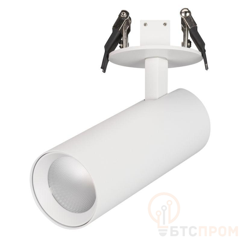 Встраиваемый поворотный светильник для потолка. Мощность 16 Вт, св. поток 1280 лм, 80 лм/Вт, теплый 3000 K, CRI>90, угол 25°, напряжение питания 230 В. Белый корпус из алюминия, линза PC, степень защиты IP20. Размер: диаметр 55 мм, длина 150 мм, высота 80 мм. Угол поворота 350°, угол наклона 90°. Монтаж встраиваемый, установочное отверстие диаметр 60 мм, глубина 30 мм. Драйвер 26-40 В, 400 мА, пульсация <5%.