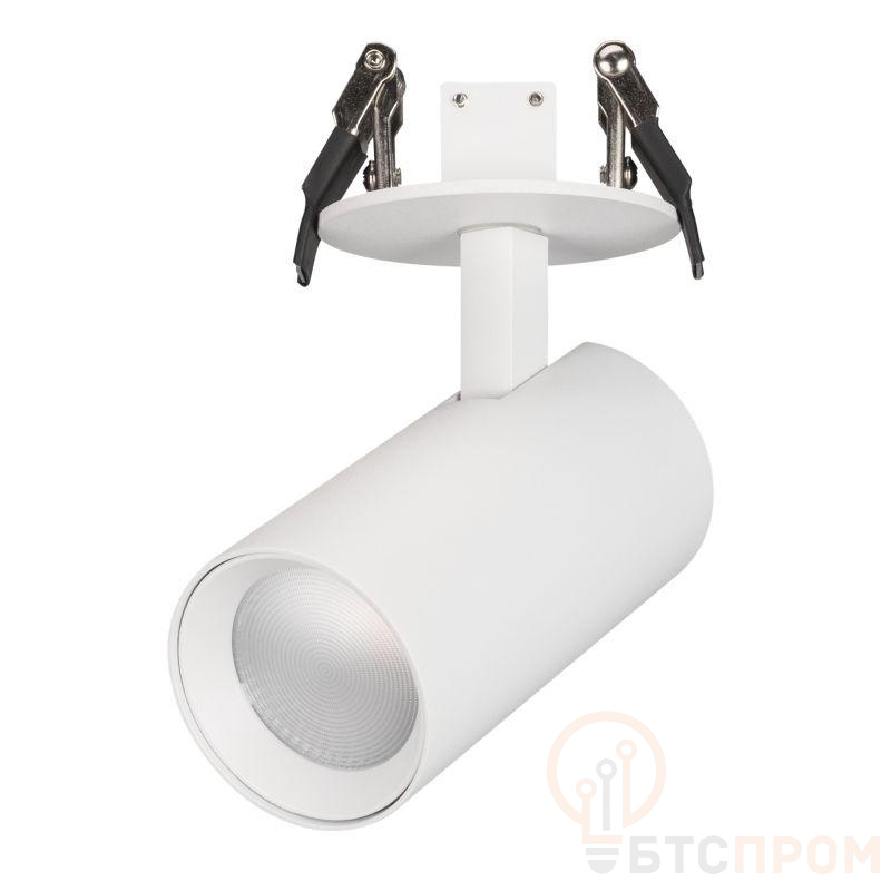 Встраиваемый поворотный светильник для потолка. Мощность 9 Вт, св. поток 666 лм, 74 лм/Вт, теплый 3000 K, CRI>90, угол 25°, напряжение питания 230 В. Белый корпус из алюминия, линза PC, степень защиты IP20. Размер: диаметр 55 мм, длина 110 мм, высота 80 мм. Угол поворота 350°, угол наклона 90°. Монтаж встраиваемый, установочное отверстие диаметр 60 мм, глубина 30 мм. Драйвер 30-45 В, 220 мА, пульсация <5%.