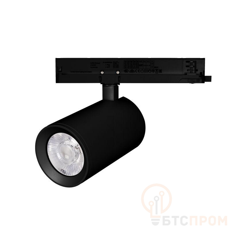 Светильник для треков/шин 4 провода, 40Вт. Цвет свечения БЕЛЫЙ ДНЕВНОЙ 4000K, световой поток 4000лм, угол 24°, CRI>90. Корпус круглый, металл, цвет черный, IP20. Размеры DxH O100x135мм. Входное напряжение AC220-240V, мощность 40Вт. Драйвер встроенный в адаптер (30-40V, 1000mA).