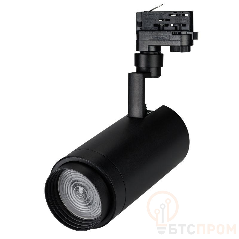 Светильник для треков/шин 4 провода для продуктов. Мощность 30 Вт, св. поток 2222 лм, 74 лм/Вт, специальный теплый 3000 K для красных и желтых фруктов и овощей, изменяемый угол 20-60°, напряжение питания 230 В. Черный корпус из алюминия, материал линзы PC/PMMA, степень защиты IP20. Размер: диаметр 100 мм, высота 220 мм. Монтаж на трек 3-фазный. Драйвер 33-44 В, 750 мА, пульсация <1%.