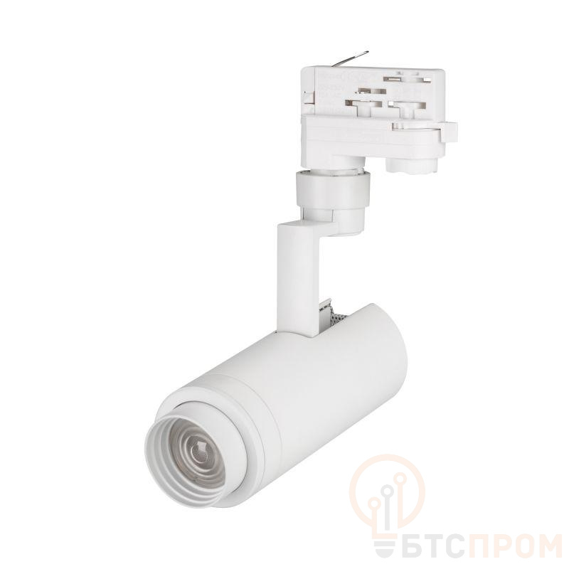 Светильник для треков/шин 4 провода, 10Вт. Цвет свечения ТЕПЛЫЙ 3000K, световой поток 800-1000лм, регулируемый угол 20-60°, CRI>90. Корпус круглый, металл, цвет белый, IP20. Размеры DxHxL O67x180x155мм. Входное напряжение AC220-240V, мощность 10Вт. Драйвер встроенный (27-38V, 260mA).