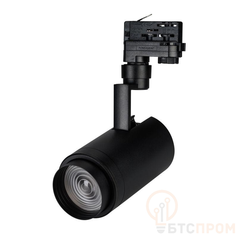 Светильник для треков/шин 4 провода. Мощность 20 Вт, св. поток 1651 лм, 83 лм/Вт, теплый 3000 K, CRI98, изменяемый угол 20-60°, напряжение питания 230 В. Черный корпус из алюминия, материал линзы PMMA, степень защиты IP20. Размер: длина 162 мм, ширина 88 мм, высота 200 мм. Монтаж на трек 3-фазный. Драйвер 30-42 В, 500 мА, пульсация <1%.