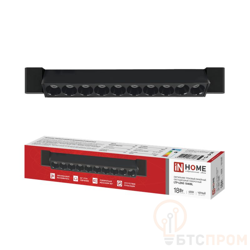 Светильник светодиодный трековый LTP-LENS 1840BL 18Вт IP20 4000К 1800лм 60гр 333мм линейный поворотн. черн. IN HOME 4690612068138