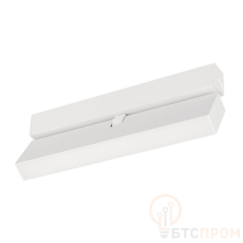 Светильник поворотный для магнитных треков шириной 25мм, 6Вт. Цвет свечения ДНЕВНОЙ 4000K, световой поток 400лм, угол 100°, CRI>90. Корпус прямоугольный, металл, цвет белый, IP20. Размеры LxWxH 204x20x46мм. Входное напряжение DC24V, мощность 6Вт. Драйвер DС24V/AC230V поставляется отдельно. Диммируется только с 026407, 027633.