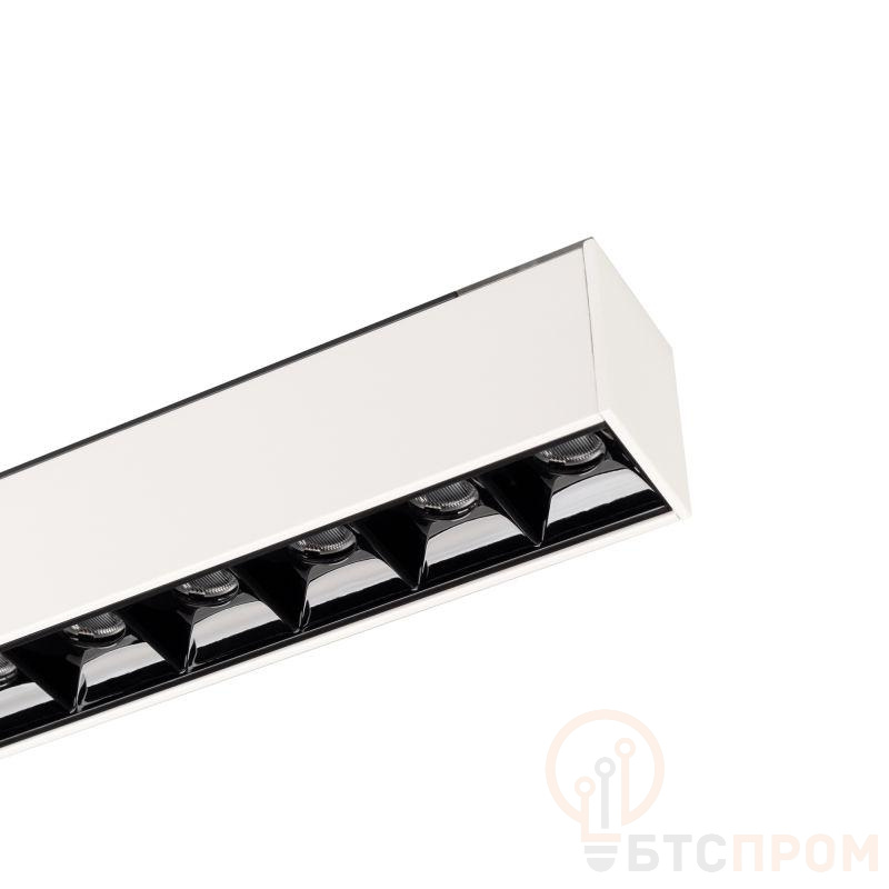 Светильник для магнитных треков шириной 45мм, 12Вт. Цвет свечения ТЕПЛЫЙ 3000K, световой поток 800лм, угол 15°, CRI>90. Корпус прямоугольный, металл, цвет черный, IP20. Размеры LxWxH 322x35x43мм. Входное напряжение DC24V, мощность 12Вт. Драйвер DС24V/AC230V поставляется отдельно. Диммируется только с 026407(1), 027633.