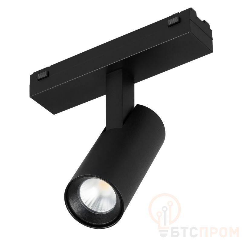 Светильник для магнитных треков MAG-VIBE. Мощность 8 Вт, св. поток 620 лм, 77 лм/Вт, теплый 3000 K, CRI>90, угол 24°, напряжение питания 48 В. Черный фигурный корпус из алюминия, экран PMMA, степень защиты IP20.Размеры LxWxH 122x35x81 мм. Длина светоизлучающего модуля 85мм. Монтаж на трек MAG-VIBE. Пульсация <1%.