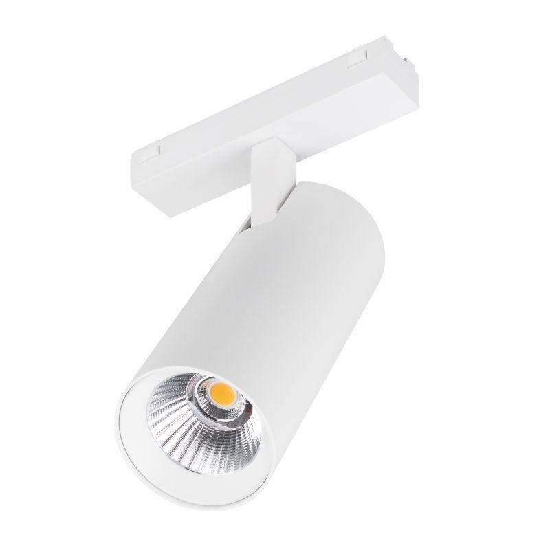 Светильник для магнитных треков MAG-VIBE с управлением DALI и изменяемой цветовой температурой. Мощность 18 Вт, св. поток 1400-1460 лм, 78-81 лм/Вт, изменяемая цветовая температура 2700-6500 K, CRI>90, угол 24°, напряжение питания 48 В. Белый фигурный корпус из алюминия, экран PMMA, степень защиты IP20. Размеры LxWxH 172x55x99 мм. Длина светоизлучающего модуля 140мм. Монтаж на трек MAG-VIBE. Пульсация <1%.