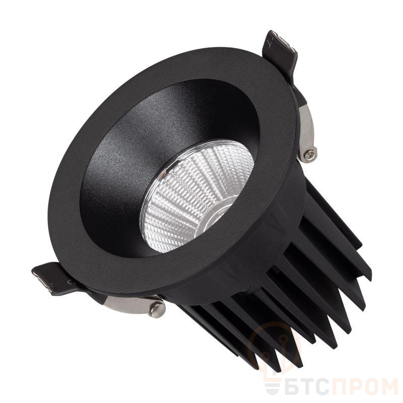 Встраиваемый светильник даунлайт. Мощность 10 Вт, св. поток 910 лм, 90 лм/Вт, дневной 4000 K, CRI>90, угол 36°, напряжение питания 230 В. Чёрный круглый корпус из алюминия, экран PMMA, степень защиты IP54. Размер: диаметр 86 мм, высота 80 мм. Монтаж встраиваемый, установочное отверстие: диаметр 80 мм. Драйвер IP54, 20-40 В, 250 мА, пульсация <1%.