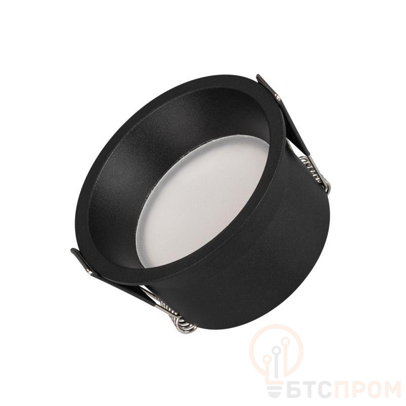 Встраиваемый светильник даунлайт. Мощность 9 Вт, св. поток 500 лм, 56 лм/Вт, тёплый 3000 K, CRI>90, угол 80°, напряжение питания 230 В. Чёрный круглый корпус из алюминия, степень защиты IP20. Размер: диаметр 82 мм, высота 46 мм. Монтаж встраиваемый, установочное отверстие: диаметр 75 мм. Драйвер 27-42 В, 200 мА, пульсация <2%.
