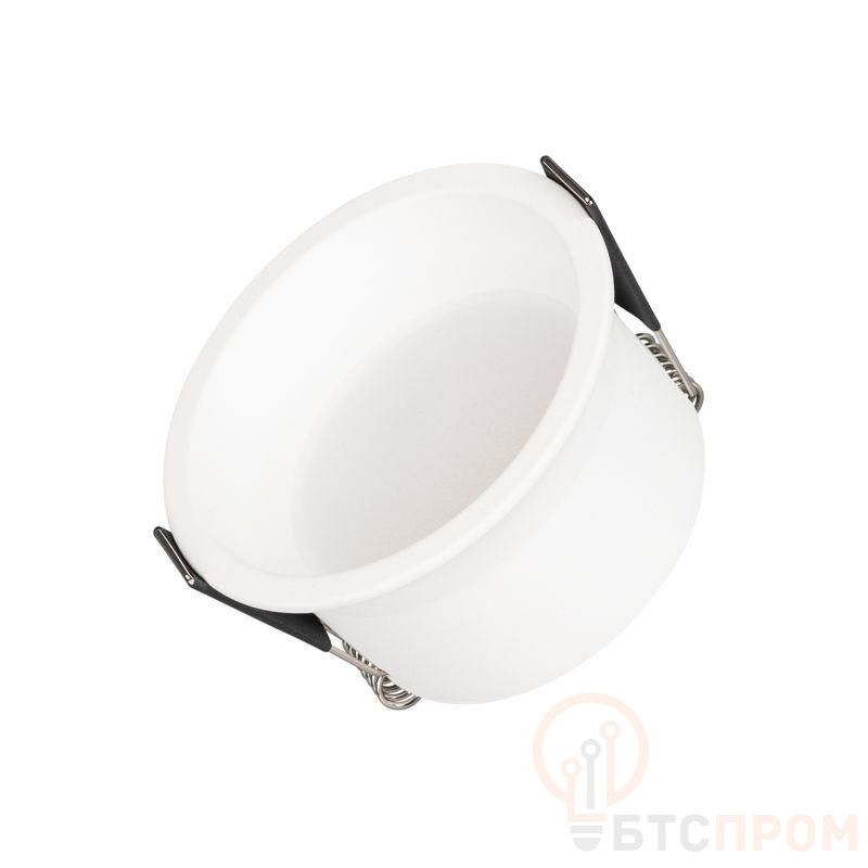 Встраиваемый светильник даунлайт. Мощность 9 Вт, св. поток 595 лм, 66 лм/Вт, тёплый 3000 K, CRI>90, угол 85°, напряжение питания 230 В. Белый круглый корпус из алюминия, степень защиты IP20. Размер: диаметр 82 мм, высота 46 мм. Монтаж встраиваемый, установочное отверстие: диаметр 75 мм. Драйвер 27-42 В, 200 мА, пульсация <2%.
