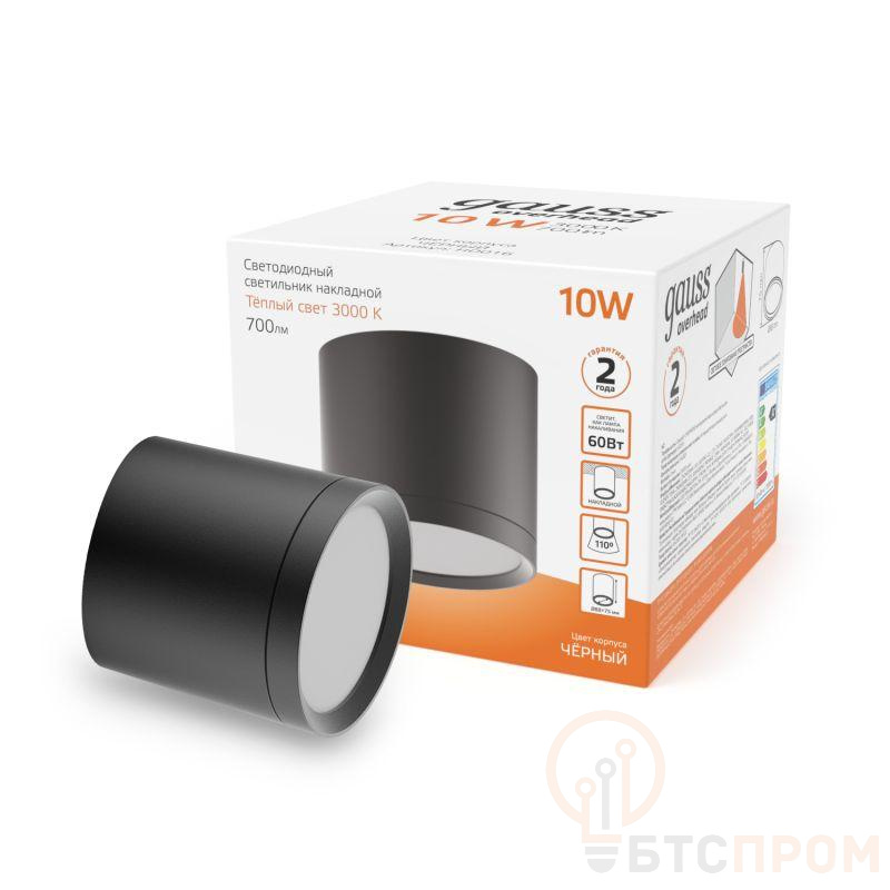 Светильник светодиодный Overhead 10Вт 3000К IP20 700лм 170-240В ДПО цилиндр накладной с рассеив. черн. GAUSS HD016