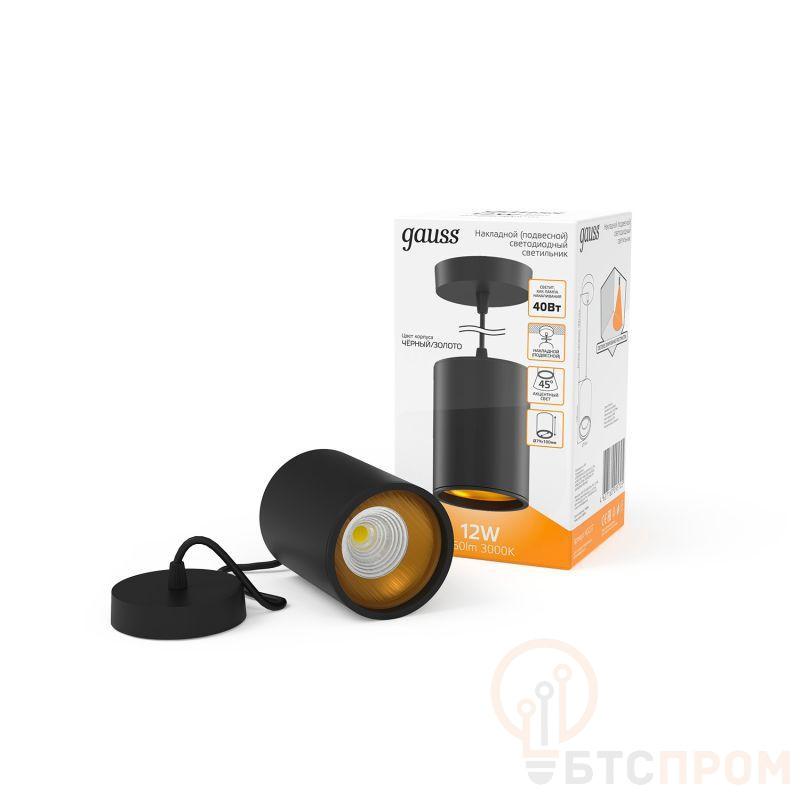 Светильник светодиодный Overhead 12Вт 3000К IP20 660лм 170-240В ДПО цилиндр подвесной черн. GAUSS HD037