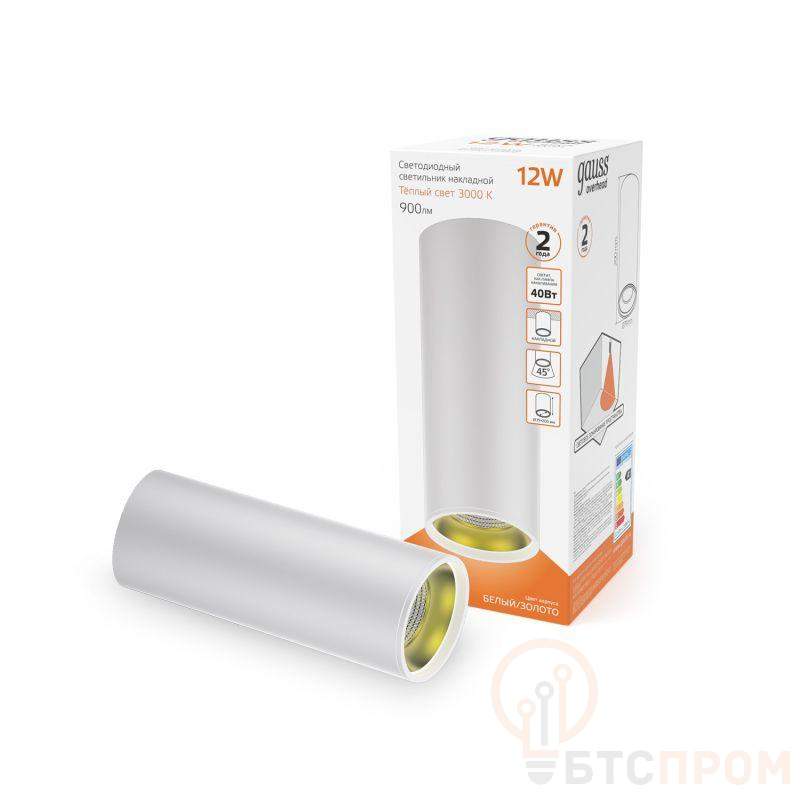 Светильник светодиодный Overhead 12Вт 3000К IP20 900лм 170-240В ДПО цилиндр накладной бел. GAUSS HD012