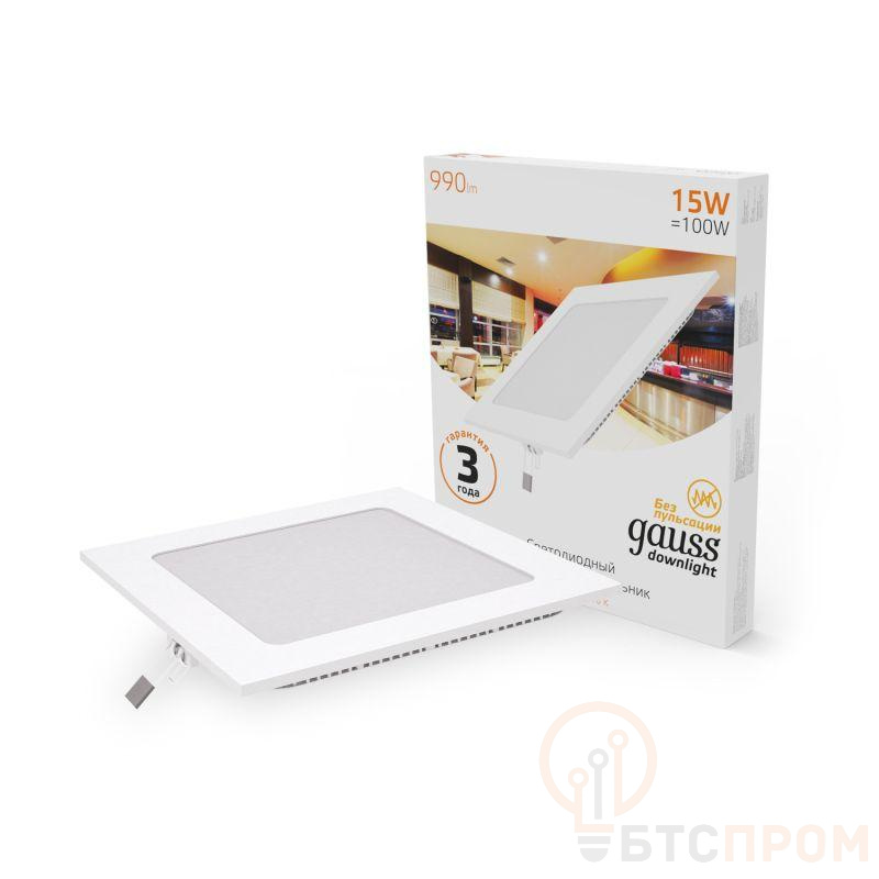 –Светильник светодиодный Slim 15Вт 3000К IP20 990лм 220-240В ДВО квадрат бел. GAUSS 940111115