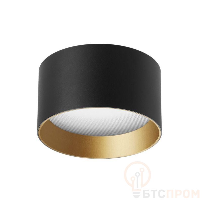 Накладной светильник. Мощность 12 Вт, св. поток 900-960 лм, 80-85 лм/Вт, теплый 2700 K, теплый 3300K, дневной 4000K (переключается), CRI>90, угол 80°, напряжение питания 230 В. Черный круглый корпус из алюминия с золотой вставкой, экран PC, степень защиты IP54. Размер: диаметр 120 мм, высота 80 мм. Монтаж накладной. Драйвер 20-40 В, 300 мА, пульсация <2%.