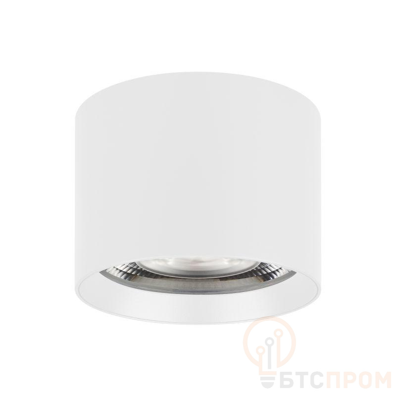 Накладной интерьерный светильник. Мощность 10 Вт, св. поток 780 лм, 78 лм/Вт, теплый 3000 K, CRI>90, угол 24°, напряжение питания 230 В. Белый круглый корпус, степень защиты IP54. Размер: диаметр 77 мм, высота 65 мм. Монтаж накладной. Драйвер встроенный, пульсация <5 %.