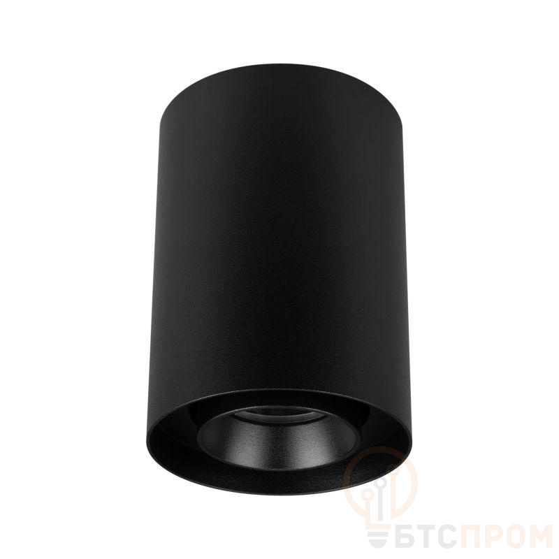 Накладной интерьерный светильник. Мощность 10 Вт, св. поток 970 лм, 93 лм/Вт, теплый 3000 K, CRI>90, угол 24°, регулируемое направление луча 40° (20+20), поворотный световой модуль вокруг своей оси на 340°, UGR <18, напряжение питания 230 В. Черный круглый корпус из алюминия, степень защиты IP54. Размер: диаметр 86,5 мм, высота 120 мм. Монтаж накладной. Драйвер 27-43 В, 250 мА, пульсация <1%.