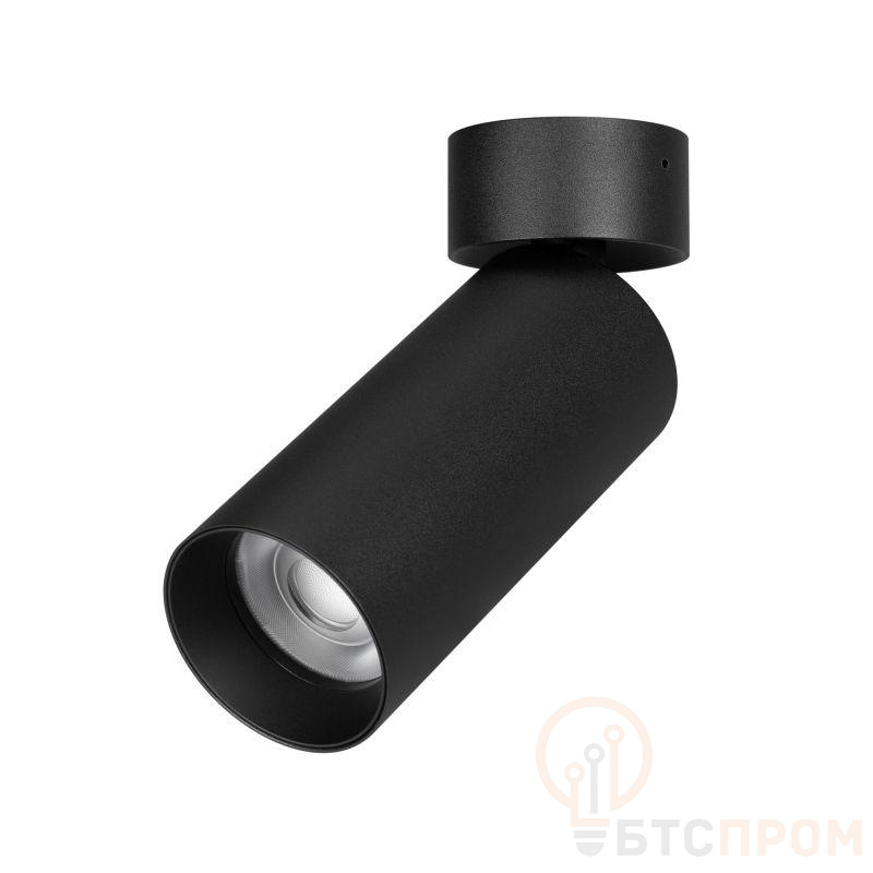 Накладной откидной светильник. Мощность 9 Вт, св. поток 560 лм, 62 лм/Вт, теплый 3000 K, CRI>90, угол 60°, напряжение питания 230 В. Черный круглый корпус из алюминия, экран PMMA, степень защиты IP40. Размер: диаметр 50 мм, высота светового модуля 110 мм, высота основания 25 мм. Угол поворота 350°, угол наклона 90°. Монтаж накладной. Встроенный драйвер 27-40 В, 200 мА, пульсация <1 %.