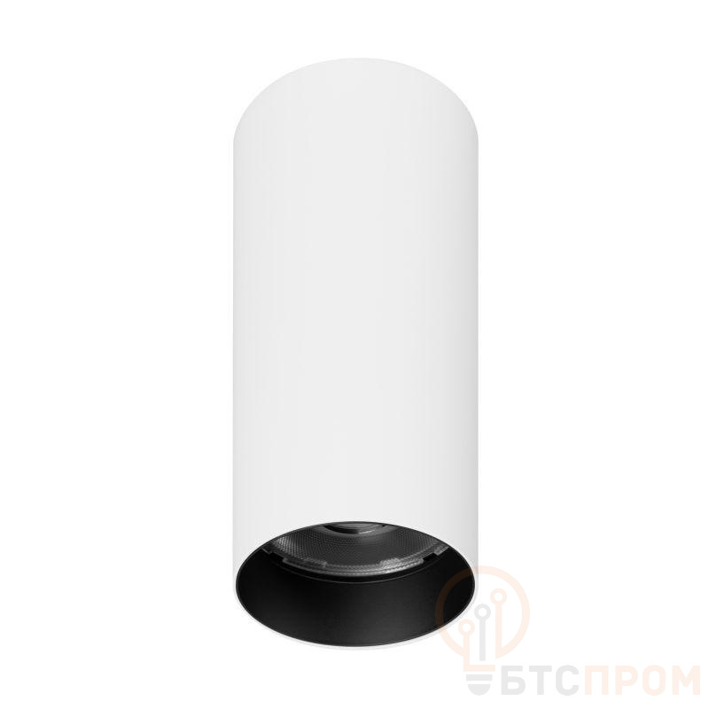 Накладной светильник. Мощность 12 Вт, св. поток 1200 лм, 100 лм/Вт, дневной 4000 K, CRI>90, угол 36°, напряжение питания 230 В. Белый круглый корпус из алюминия, экран PMMA, степень защиты IP40. Размер: диаметр 60 мм, высота 130 мм. Монтаж накладной. Встроенный драйвер 27-42 В, 300 мA, пульсация <1%.
