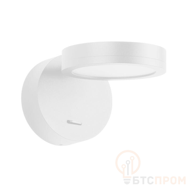 Накладной поворотный настенный светильник. Мощность 6 Вт, св. поток 360 лм, 60 лм/Вт, теплый 3000 K, CRI>90, угол 110°, напряжение питания 230 В. Белый круглый корпус из алюминия, степень защиты IP20. Размер основания O90 x 32 мм. Размер светоизлучателя O100 x 21 мм, угол поворота вокруг своей оси 350°. Монтаж накладной. Драйвер встроенный, 5 - 18В., 350мА, пульсация <1%.