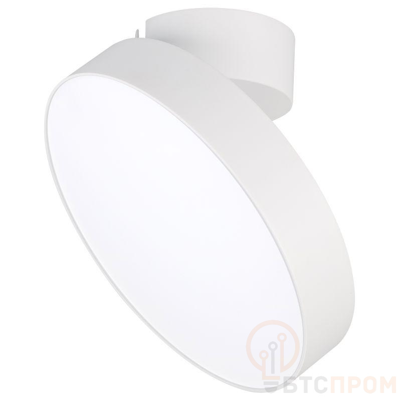 Накладной откидной светильник 20Вт, белый круглый корпус. Цвет ТЕПЛЫЙ 3000K, св.поток 1600лм, CRI(Ra)>90, угол 110°. Размер светильника Ф210x41мм, размер чаши Ф95x45мм. Питание AC220-240V, 20Вт, драйвер встроенный (500mA 27-40V). Поворачивается вокруг своей оси на 350° и отклоняется на 90°.Пульсация <0,3%