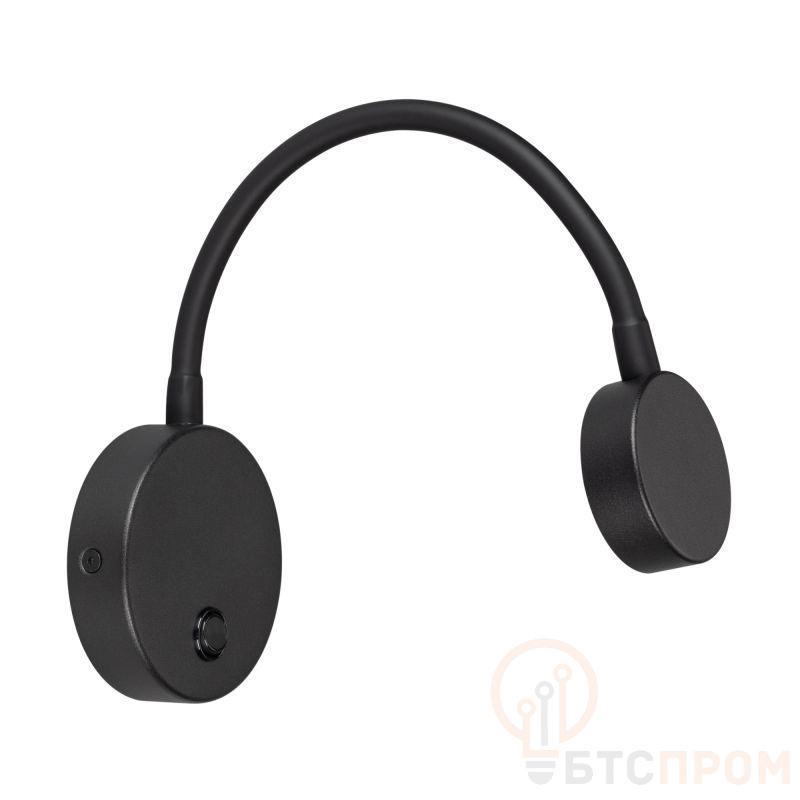 Накладной настенный светильник 3Вт, чёрный алюминиевый корпус. Цвет ТЕПЛЫЙ БЕЛЫЙ 3000K, св.поток 180лм, CRI(Ra)>80, угол 100°. Размер Светильник O65,2х20,7мм; Основание O99,5х25,5мм; Гибкий кронштейн O10х350мм. IP20. Питание AC220-240V, 3Вт, встроенный драйвер., пульсация <1%