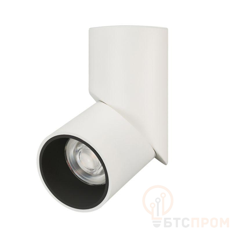 Накладной поворотный светильник 12 Вт. Цвет ДНЕВНОЙ 4000K, св.поток 850 лм, CRI(Ra)>90, угол свечения 30°, угол регулировки наклона 90°, угол поворота 355°. Корпус круглый, белый алюминий, IP40. Размер DxH 71x177 мм. Питание AC 220-240 В, 12 Вт, драйвер встроенный (DC 300 мА, 28-42 В).
