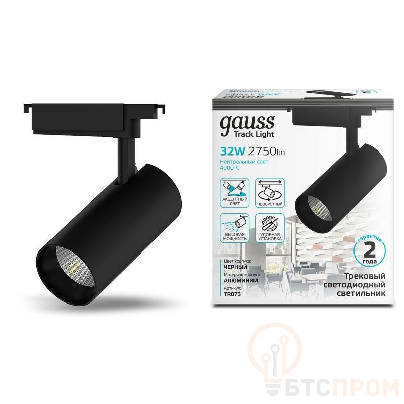 Светильник светодиодный трековый Track 32Вт 4000К IP20 2750лм 180-240В ДПО угол 24град. цилиндр 1ф черн. GAUSS TR073