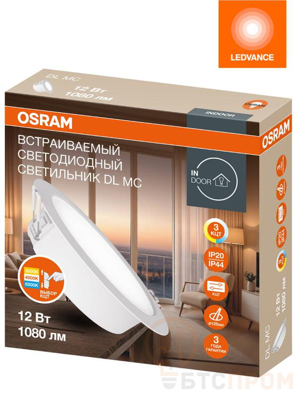 Встраиваемый светодиодный светильник Downlight DL MC от OSRAM — это современное и энергоэффективное решение для организации основного или локального освещения. Модель мощностью 12 Вт обеспечивает мощный световой поток 1710 лм, что позволяет эффективно осветить любую зону.