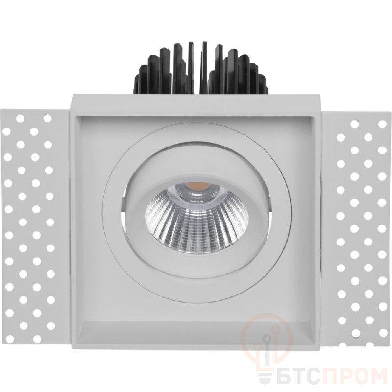 Встраиваемый светодиодный светильник направленного света изготовлен из алюминия, окрашенного матовой краской. Оптическая часть закрыта защитным стеклом. Стандартный цвет: WH – белый. Стандартный отражатель – 45 град. Установка в потолок Корпус светильника изготовлен из алюминия, декоративная рамка – из окрашенного белой матовой краской алюминия. Оптическая часть закрыта защитным стеклом. Возможны варианты исполнения с линзой/рефлетором, решеткой, матовым рассеивателем, призмами и т.д.